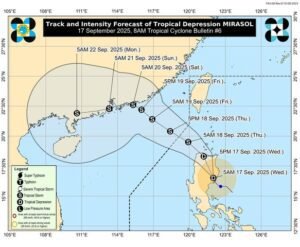 Tropical Depression #MirasolPHIssued at 8:00 AM, 17 September 2025Valid until 11:00 AM “Mirasol” traverses Northern Luzon Wind SignalsTCWS #1