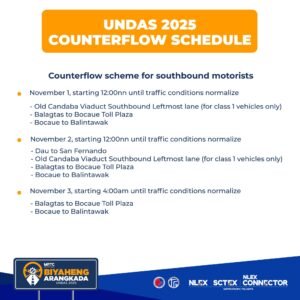 COUNTERFLOW SCHEME FOR UNDAS 2025 To help manage the expected surge of vehicles during the long weekend, NLEX Corporation