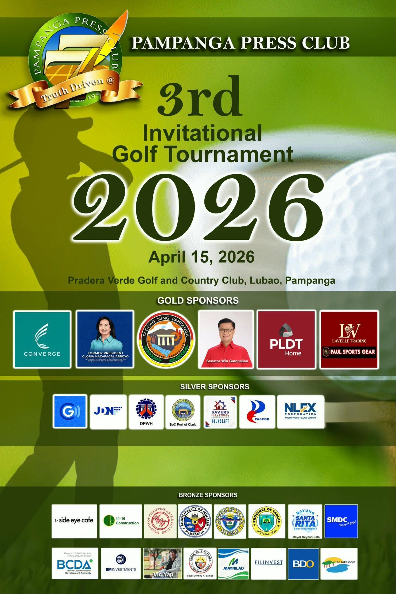 Pampanga Press Club (PPC) is set to stage its 3rd Invitational Golf Tournament on April 15 at Pradera Verde