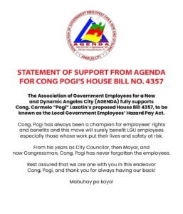 The Association of Government Employees for a New and Dynamic Angeles City (AGENDA) has expressed full support for House